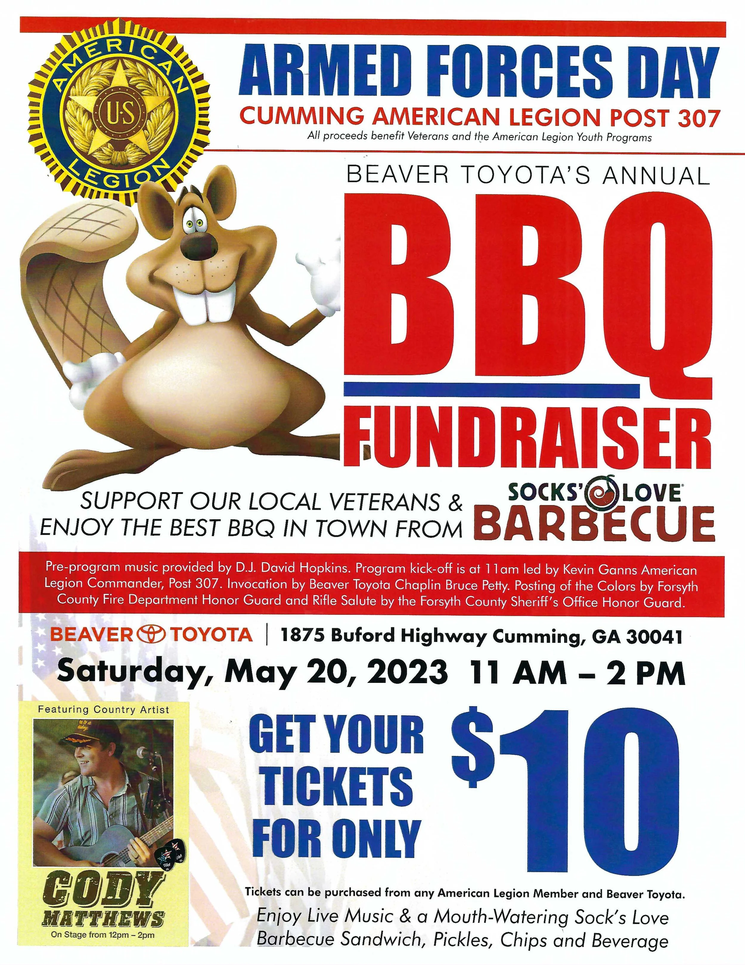 DON’T MISS THIS! The Annual Armed Forces Day BBQ, hosted by American Legion Post 307, Beaver Toyota, and Socks Love BBQ. Flag ceremony, Honor Guard, recognition of Veterans and First Responders, music, LIVE entertainment and more!